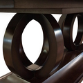 Задумайтесь, как поразятся ваши гости, увидев ножки в виде полых шаров из четырех переплетенных брусков, на которых расположена массивная столешница толщиной 8 см, и вам несомненно захочется расположить такой стол в своей столовой.