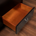 Каркас — массив дерева и высококачественная МДФ высокой плотности, отделка — натуральный шпон вишни. Все выдвижные ящики снабжены направляющими. Ручки хромированные.