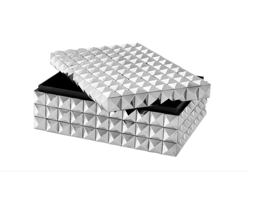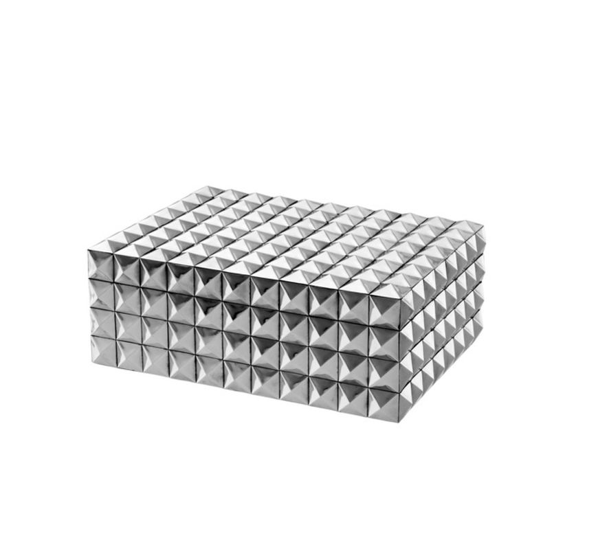 Эта декоративная шкатулка с никелевой отделкой излучает дизайнерский стиль.