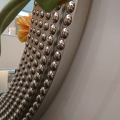 Круглое зеркало от итальянского бренда Fratelli Barri с эффектной рамой - имитацией бусинок разного диаметра.