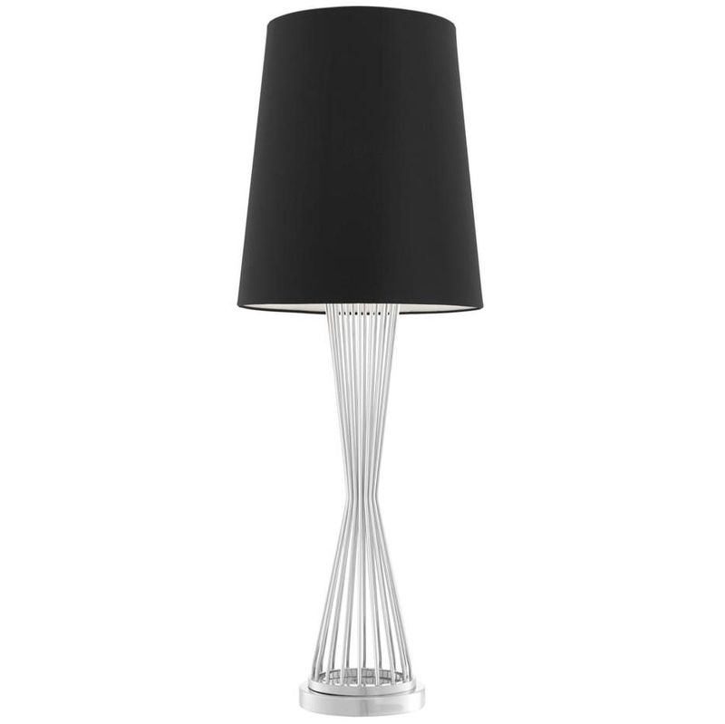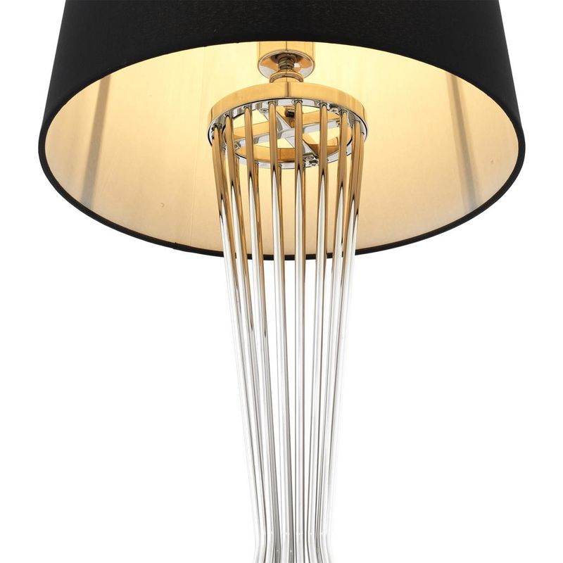 Настольная лампа с фигурным основанием выполнена из железа и поливинилхлорида. В комплекте абажур из полиэстра.