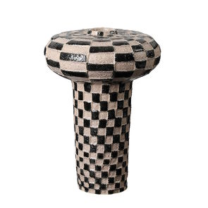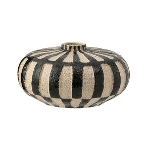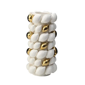 Ваза-цилиндр с рельефной поверхностью выполнена в стиле ар-деко из стекла.