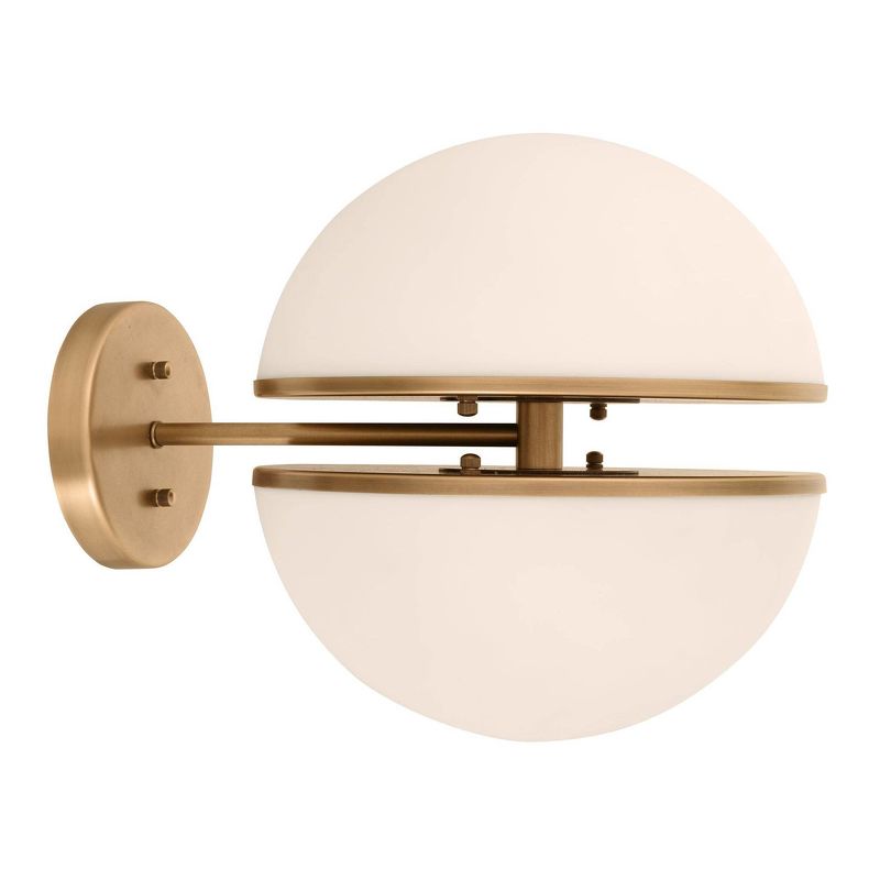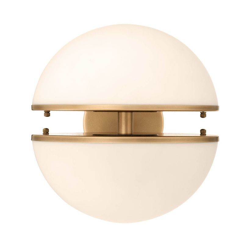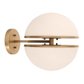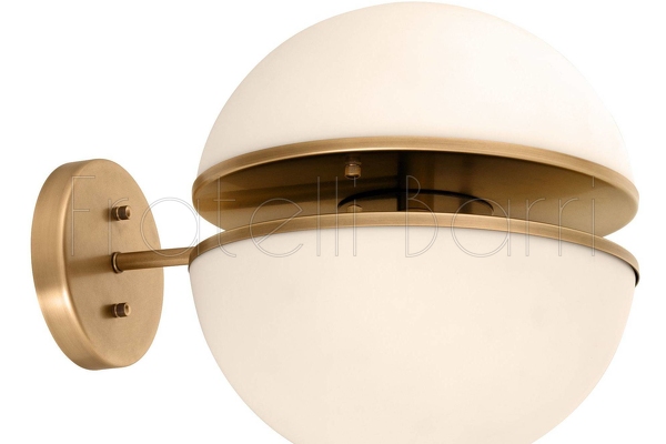 Бра выполнено из античной латуни, а абажур образован двумя полусферами из белого стекла с открытым пространством между ними. Для наиболее красивого освещения мы рекомендуем светодиодную лампу для холодильника.