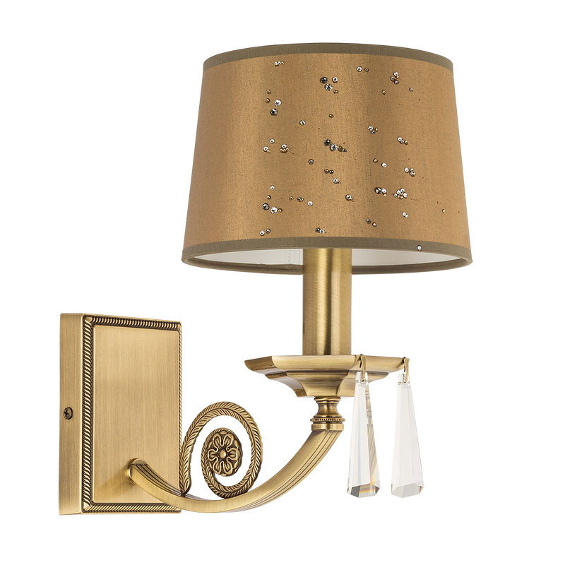 Элегантное бра выполнено в классическом стиле. Витое основание декорировано подвесками из хрусталя Asfour и дополнено нежным абажуром. Функциональная и изящная модель станет достойным дополнением интерьера. Рассчитано на одну лампу.