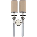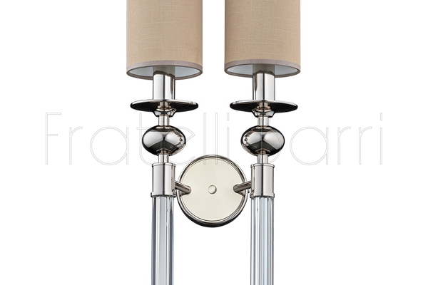Элегантное бра выполнено в стиле модерн. Латунное основание декорировано стеклянной вставкой и дополнено нежными абажурами. Функциональная и изящная модель станет достойным дополнением интерьера. Рассчитано на две лампы.