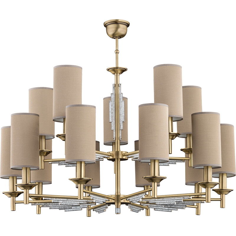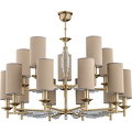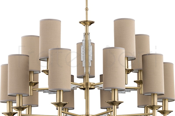 Люстра выполнена в классическом стиле. Основание из латуни декорировано кристаллами Swarovski и дополнено тканевыми абажурами. Функциональная и изящная модель станет достойным дополнением интерьера. Рассчитано на пятнадцать лампочек.