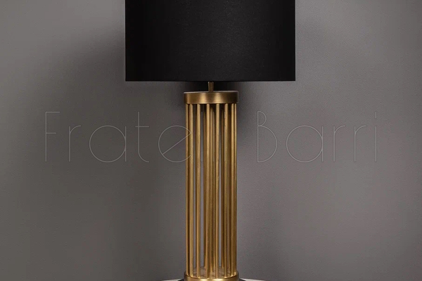 Эта современная настольная лампа на основании из черного мрамора излучает сдержанный шарм. Ее воздушное цилиндрическое основание состоит из металлических стержней с отделкой из античной латуни.