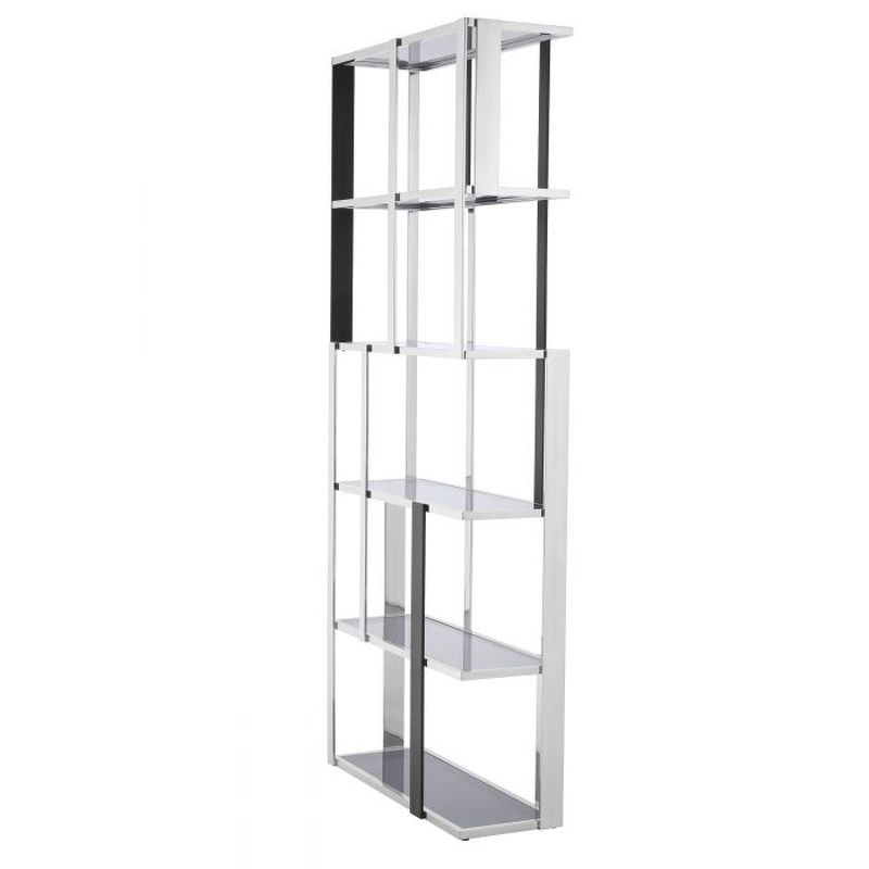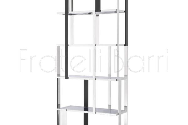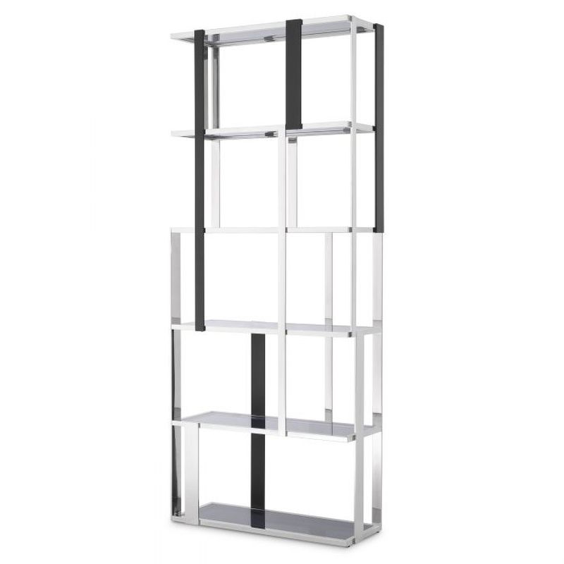 Стеллаж Clio, отделка полированная сталь, дымчатое стекло, черный матовый
