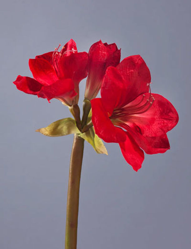 Амариллис тёмно-красный. Изготовлен в Бельгии. Цвет - темно-красный. Материал - ткань на основе шёлка и высокотехнологичный пластик. Наполнение - 2 цветка и 1 бутон.