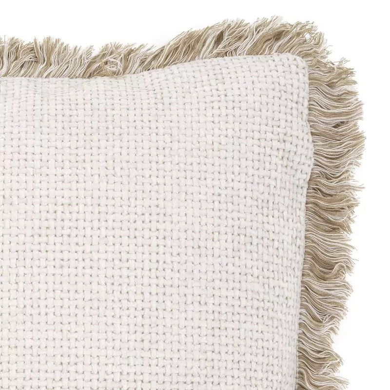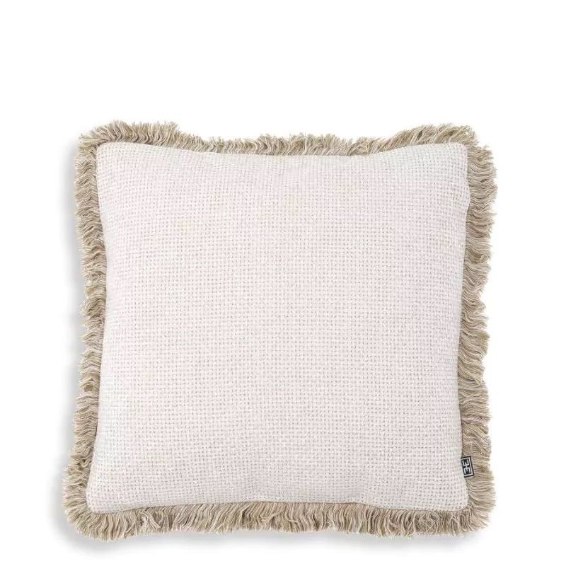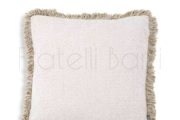 Подушка Nami S, отделка белая ткань Lyssa, кремовая бахрома