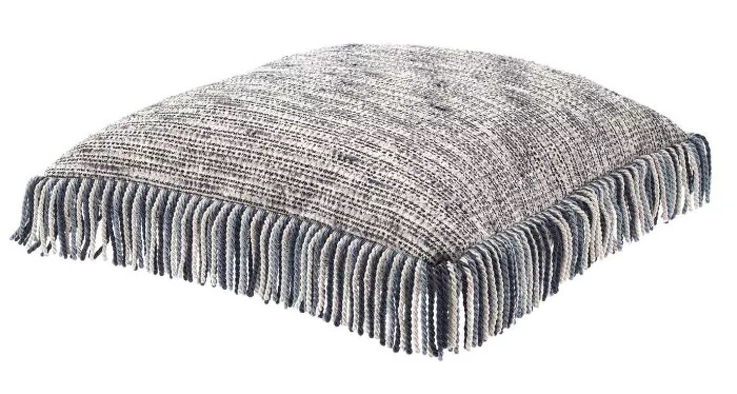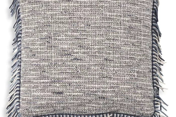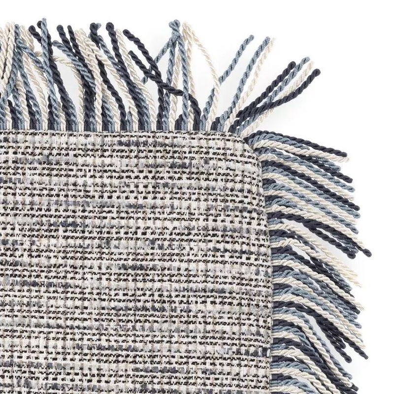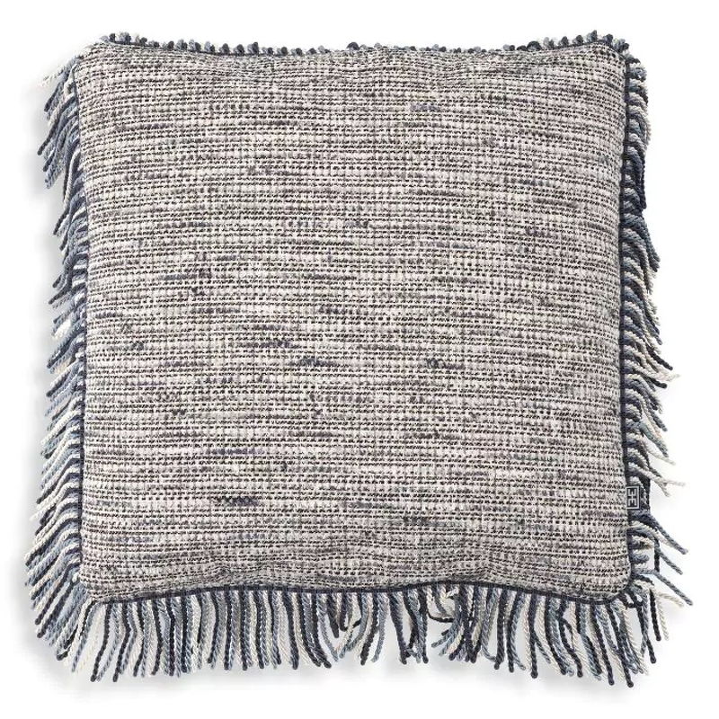 Подушка Dupre L, отделка бежево-голубая ткань Mademoiselle, серо-голубая бахрома
