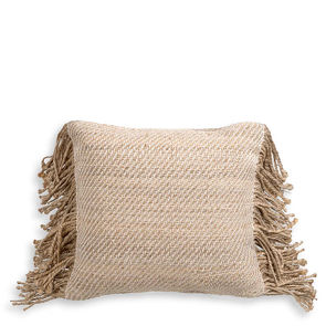 Подушка Nami L, отделка белая ткань Lyssa, кремовая бахрома