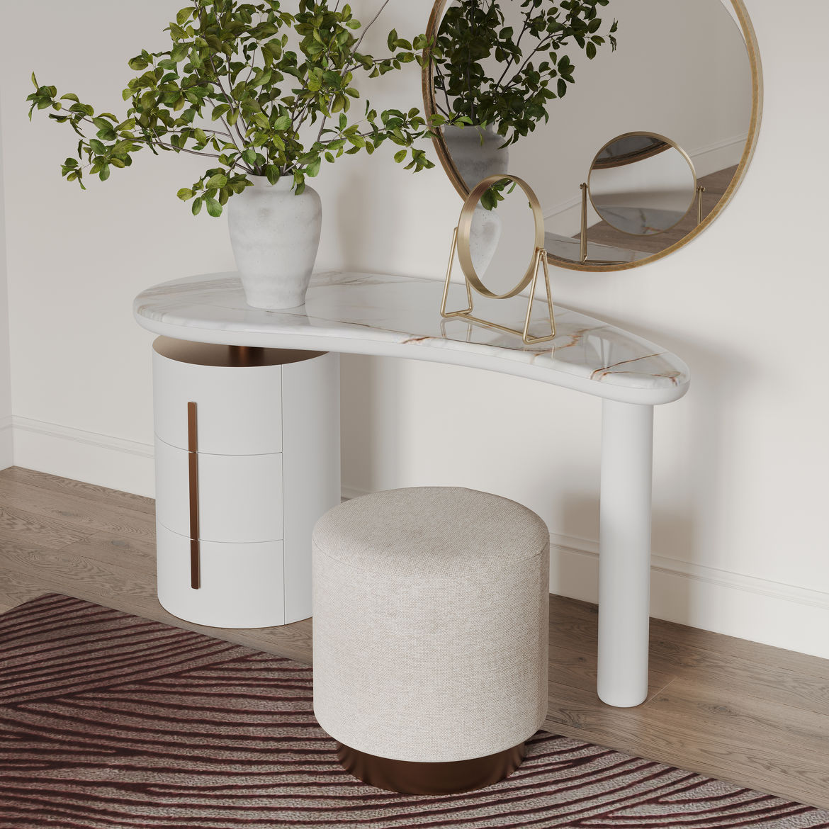 Тулетный столик, отделка мрамор TRS2207, белый матовый лак W60510, WJ-09